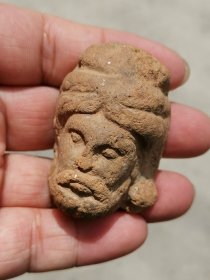 旧藏,红陶胡人俑头,丝路文化,盛唐遗风,皮壳沧桑,塑造传神。规格:红陶胡人48*33*30mm