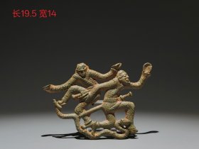 战国青铜蟠蛇跪人俑