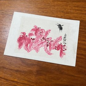 齐白石 老人 蜻蜓 红叶 木版水印 空白贺卡 精美