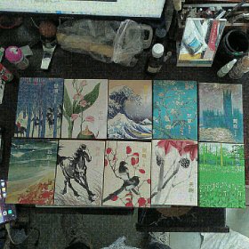 绘经典 艺术文创明信片10种合售(莫奈、梵高、大卫·霍克尼、富岳、爱德华兹、布拉吉利、弗林特、徐悲鸿、于非闇、齐白石)