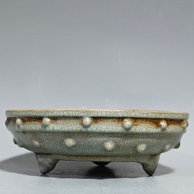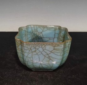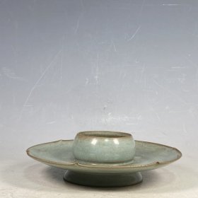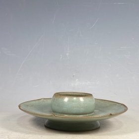 本店旧藏!宋官窑汝瓷展托笔洗碗摆件:此造型美观实用,做工精致,线条流畅自然,胎质细腻光滑,自然磨损,老味十足,值得收藏:尺寸7x17厘米.¥260