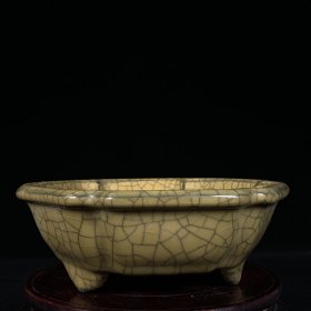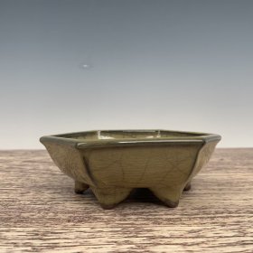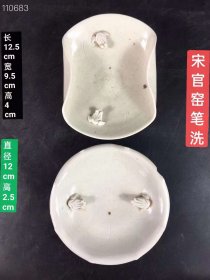 宋官窑汝瓷笔洗摆件:此造型美观大方,纯手工制作,做工精湛,胎质细腻光滑。线条流畅,磨损自然、老味十足,极其少有,值得收藏。尺寸7.5x23厘米,¥360