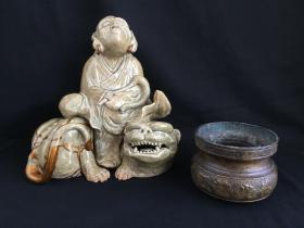 明清铜香炉、竹雕臂搁、周芷岩竹雕笔筒、端砚、松花砚、明清玉器、清代古墨、清代云锦、刺绣、山子、名家雕扇骨、铜鎏金佛等《集萃--古董珍玩专场》大16开版本画集