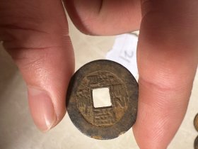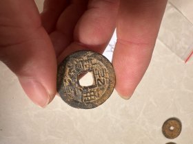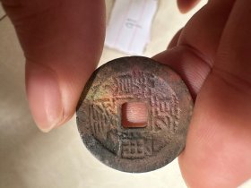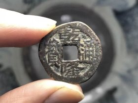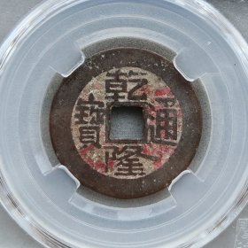 乾隆通宝月食钱,包老。相传在月食发生时,东北地区的母亲们会从家中取出一枚铜钱,快速在井台石上磨成方形(称为“磨边”),寓意“四方平安”。这种行为被赋予“趋吉避凶”的寓意,象征护佑孩子或远行者平安。