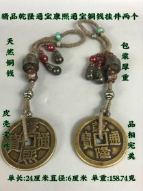 595_精品乾隆通宝康熙通宝铜钱挂件两个,天然铜钱,包浆厚重。皮壳老辣,品相完美