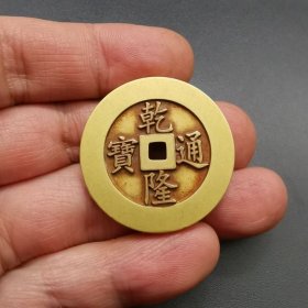 黄铜乾隆通宝方孔铜钱雕刻花纹包浆厚重精美绝伦特价
