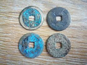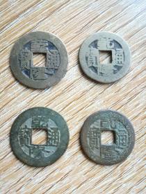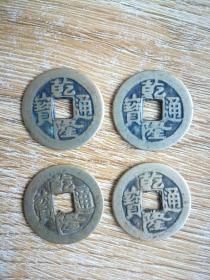 【古币收藏】乾隆通宝4枚老钱通走 辽宁乡村老货 黄色+黑色铜钱 笔画清晰 坚劲有力 中规中矩 分量坠手 大的直径2.5厘米小的2.3或2.2厘米 包老包真