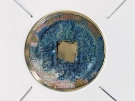 嘉祐元宝-广穿(小平,真书。蓝锈美品。《北宋铜钱》745号)