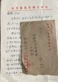 金雨困(1926-,新华社高级记者、解放战争著名战地记者,浙江省新闻工作者协会副会长、浙江省政协文史委员会副主任,保护西湖的连续报道五获中央领导批示)致徐熊信札一通3页附封。1-10-8