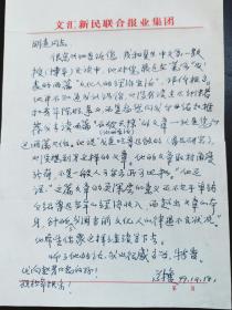 联合国教科文组织产学合作教席主持人助理,教席办公室主任,著名作家、记者何永汕致著名作家、编辑,《作家文摘》常务副总编石湾信札及实寄封(北京政协笺)