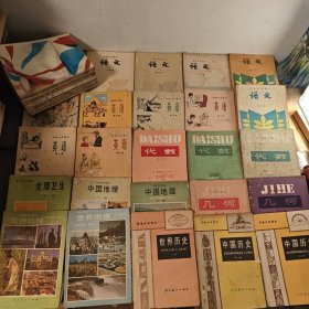 80年代版初级中学课本 大全套全31册 语文1-6 世界地理上下 几何12 代数123 中国地理上下 英语1-6 中国历史1-4 动物学全一册 生理卫生全一册 品相如图