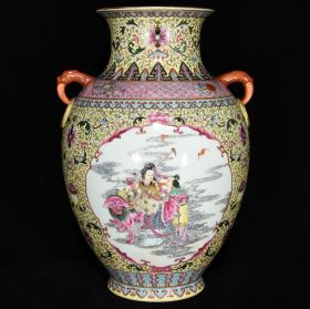 清雍正古月轩粉彩人物纹象耳瓶,高40.5厘米直径24厘米
