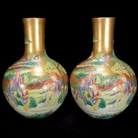 清雍正鎏金粉彩西洋人物纹天球瓶 尺寸:49×32厘米 价格10600