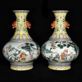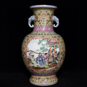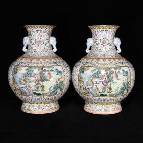 清乾隆粉彩人物故事纹象耳瓶,35.5×26,价格:10260