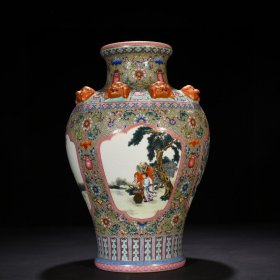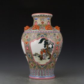 清乾隆粉彩人物故事纹兽耳瓶