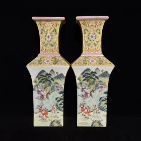 清乾隆粉彩人物故事纹方瓶