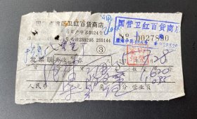 (上海)国营卢湾区红卫百货商店发票联/1975年