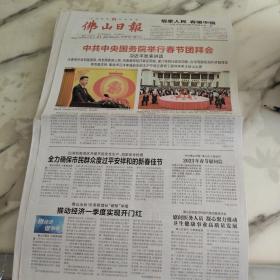 佛山日报2023年1月21日四开四版,国务院举行春节团拜会,向全国各族人民拜年。佛山出台18条稳增长硬核举措推动经济一季度实现开门红。卫生健康事业高质量发展。兴华街品品年味。