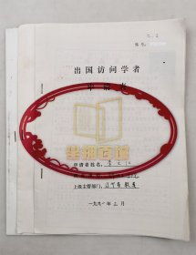 顾奎相(辽宁大学副校长)刘鹏举(辽宁中医学院院长)魏宝善(辽宁工学院院长)签名3页 附《出国访问学者申请表》3份(印刷)『坐拥百城LYJ250512A05』