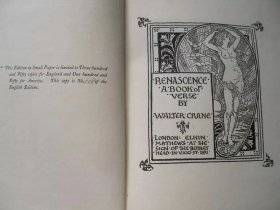 沃尔特克兰诗画创作集《复兴诗篇》,手工纸小开本限量版,英国版限量350本,收录沃尔特克兰Walter Crane 绘制39幅黑白木刻插图及其本人创作的诗歌作品若干