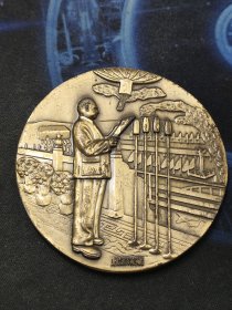 毛泽东同志诞辰一百周年纪念铜章错版(1893误为1883)直径60毫米 背面开国大典图案下方铸有殷国清藏字样 殷国清为国内著名铜章收藏家