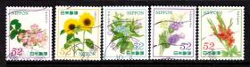 日邮·日本邮票信销·樱花目录编号C2214 2015年 礼仪之花 待客花卉 第3集 52円信销5全(向日葵、剑兰、满堂红、土耳其桔梗、蓝星花)