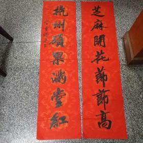 上海一一董晓迅对联1幅,书法对联内容很好(芝麻开花节节高,杭州硕果满堂红),未盖印章。 上海市书法家协会著名书法家董晓迅先生,是中国书法家协会顾问周慧珺的关门弟子,134X34厘米X2