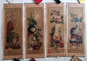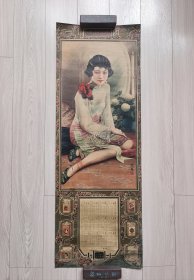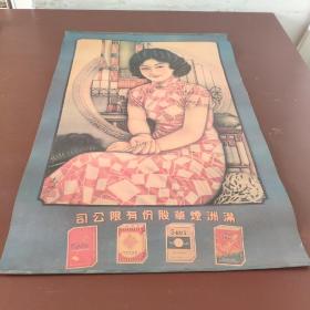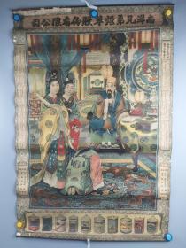 三笑姻缘九美图事略 烟画 中国南洋兄弟烟草股份有限公司 大幅:长106厘米x宽38.6厘米 美女众多 人物喜庆 穿戴整齐 华丽 有修补、其中一张左下角有缺损 题材罕见 稀有品种 两张合售
