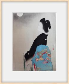 #木版口绘#镝木清方*《美人》*美人绘*保证明治时期原刻。明治三十六年松居松叶著《烟草盆》小说口绘,青木嵩山堂版,套色技术精湛,品相完好,版画尺寸约29*22左右。