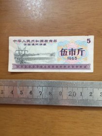 1965年中华人民共和国粮食部全国通用粮票:伍市斤。 (编号:011)