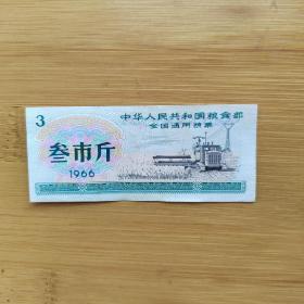 【票证年代】1966全国通用粮票 3斤 如图