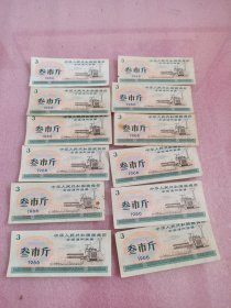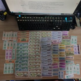 上海市副食品购买券、上海市鲜蛋购买票、1983上海市专用购货券、1983上海市布票、1978江苏地方粮票、1966全国通用粮票、1974北京市地方粮票