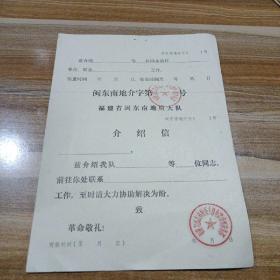 福建省闽东南地质大队介绍信