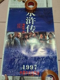 电视剧《水浒传》中央电视台1997年挂历/双月历1份/李雪健(宋江)/周野芒(林冲)/臧金生(鲁智深)/丁海峰(武松)/赵小锐(李逵)/翟乃社(杨志)/7张全2开/底边裂口