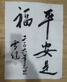 著名演员、中国影协主席、中国文艺联合会副主席 李雪健 书法作品《祝好人一生平安》一幅(纸本立轴,画心约8.2平尺,钤印:雪健、平安是福、己亥吉祥) HXTX319788