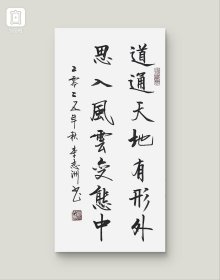 李志洲书法作品,四尺四开小品《道通天地有形外,思入风云变态中》画芯。出售的是画芯,证书是展示。