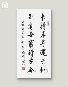李志洲书法作品,四尺四开小品《长将不尽还天地,别有无穷待古今》画芯。出售的是画芯,证书是展示。