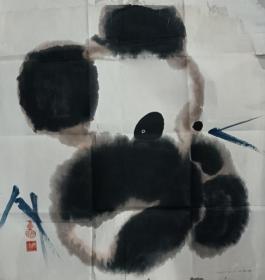 153 星云大师随从翻译,中央美院高才生 弗门书画家 秒光法师 熊猫斗方, 好可爱