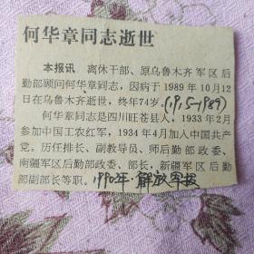 (开国大校)剪报 何华章同志逝世