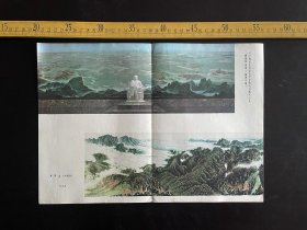 (满100元包邮)老画页:毛主席纪念堂北大厅中的毛主席汉白玉雕像和绒绣《祖国大地》、关山月国画《井冈山》,另一面是伍霖生 尚君砺国画《遵义颂》、林丰俗 陈洞庭 梁世雄国画《遵义曙光》