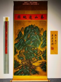 王鉴丈二巨幅绢本《春山远眺圖》山水立轴。王鉴(1598年-1677年),字元照,又字圆照,号湘碧、染香庵主,江苏太仓人,明刑部尚书王世贞之孙。“清初六家”或“四王吴恽”之一,中国明末清初画家。