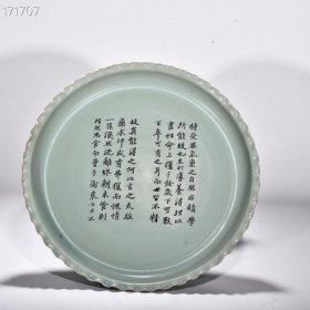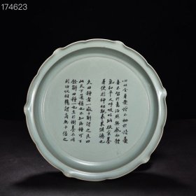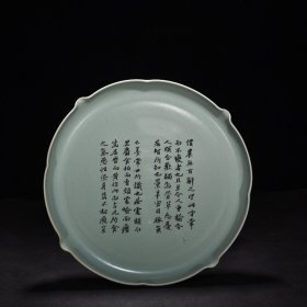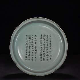 瓷器 宋汝窑天青釉花口盘(苏轼书法养生论)崇宁二年清凉寺御制款 高7厘米宽42厘米
