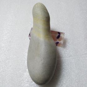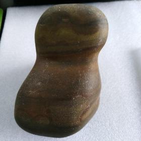 广西来宾市大湾古代砭石(红水河流域奇石精品,微晶养生石)古骆越石器精品收藏 〔人地形砭石精品〕360克 光滑把件巡洋舰