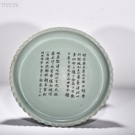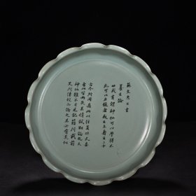 旧藏 宋汝窑天青釉花边盘(苏轼书法养生论)大宋汝窑清凉寺御制款 高6厘米宽42厘米