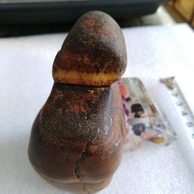 广西来宾市大湾古代砭石(红水河流域奇石精品,微晶养生石)古骆越石器精品 〔人形砭石精品〕737克 石蘑菇把件