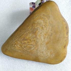 广西来宾市大湾古代砭石(红水河流域奇石精品,微晶养生石)古骆越石器精品 〔地形砭石精品〕753克 多边形权砭 底部光滑