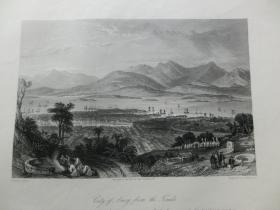 【百元包邮】《从坟场眺望厦门市》中国题材钢版画 托马斯.阿罗姆 (Thomas Allom)作品 1850年代 纸张尺寸约29.6 ×22.1厘米