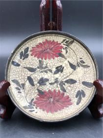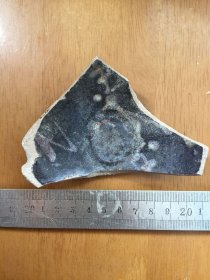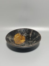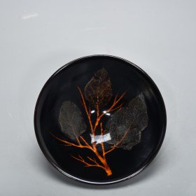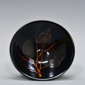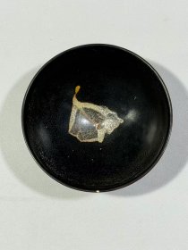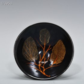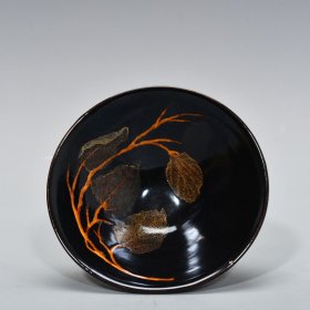 宋代吉州窑木叶盏,黑釉工艺,碗内有天然木叶,叶脉清晰。口径15.7cm,高5.3cm。器型规整,釉色温润,木叶纹理自然,窑址出的。碎片粘接,标本。适合收藏或茶室摆件。