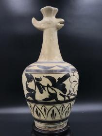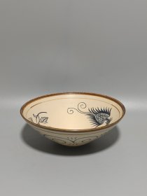 宋代吉州窑手绘凤纹碗,口径约15.8cm,高5.6cm。碗身绘凤纹,工艺精细,釉色自然,胎质细腻。整体保存完好,无修复无磕碰,品相完整,无瑕疵。适合收藏或日常使用。