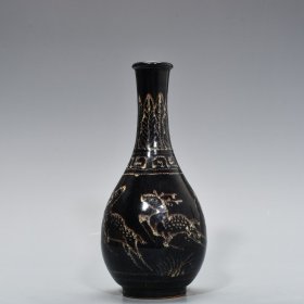 宋代吉州窑龙纹斗笠碗,瓷质细腻,釉色自然,龙纹清晰,工艺老道。碗身绘龙纹,外壁有云纹装饰,整体保存完好,无明显磕碰,品相几乎全新。尺寸直径15.7cm,高5.8cm。适合收藏或博古架摆放。